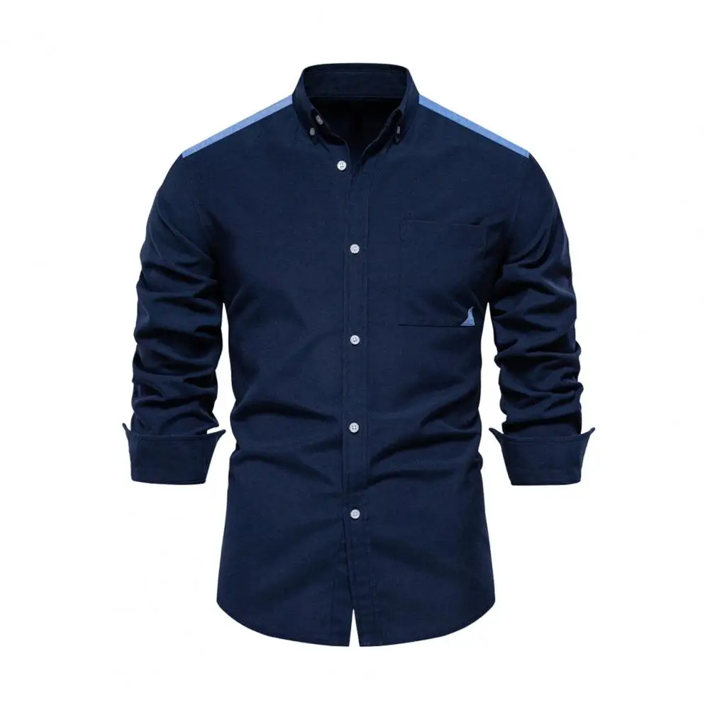 Men Business Shirt Men Shirt Elegant Men’s Formal Shirt for Spring Fall with Slim Fit Lapel Collar Single-breasted for Business